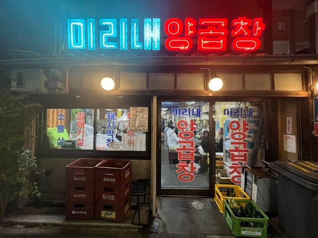 阪急「京都河原町駅」から徒歩3分。京都・下京区の繁華街にある「釜山式韓国焼肉 ミリネヤンコプチャン」は、韓国・釜山のホルモン焼き文化を体験できる焼肉店です。入口から店内にかけて、韓国語の看板やステンレス製のテーブルが並び、まるで韓国の市場に足を踏み入れたかのような空間が広がっています。