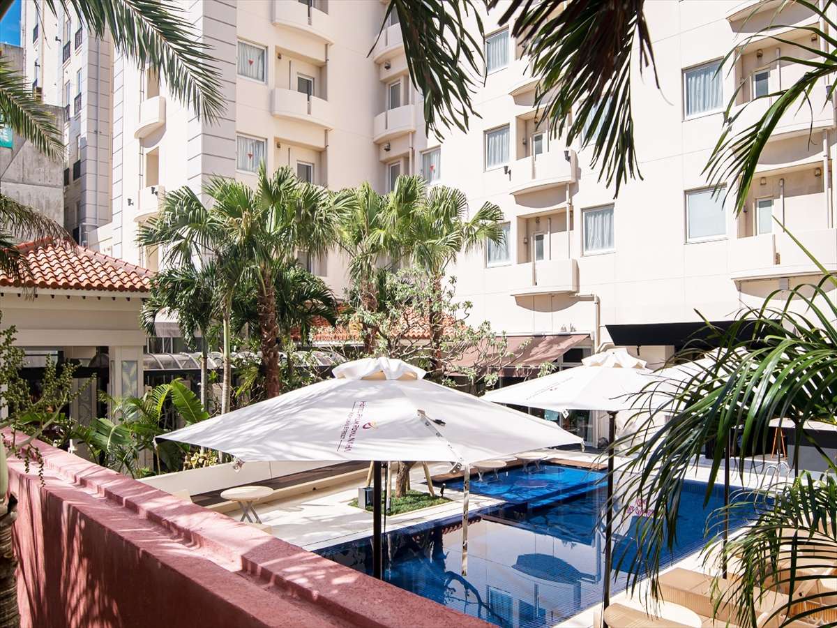バス停「てんぶす前」から徒歩1分。沖縄県那覇市の活気ある国際通りにひっそりとたたずむ「ホテルパームロイヤルNAHA 国際通り」は、ビジネスと観光の拠点として理想的なロケーションを誇るシティホテルです。