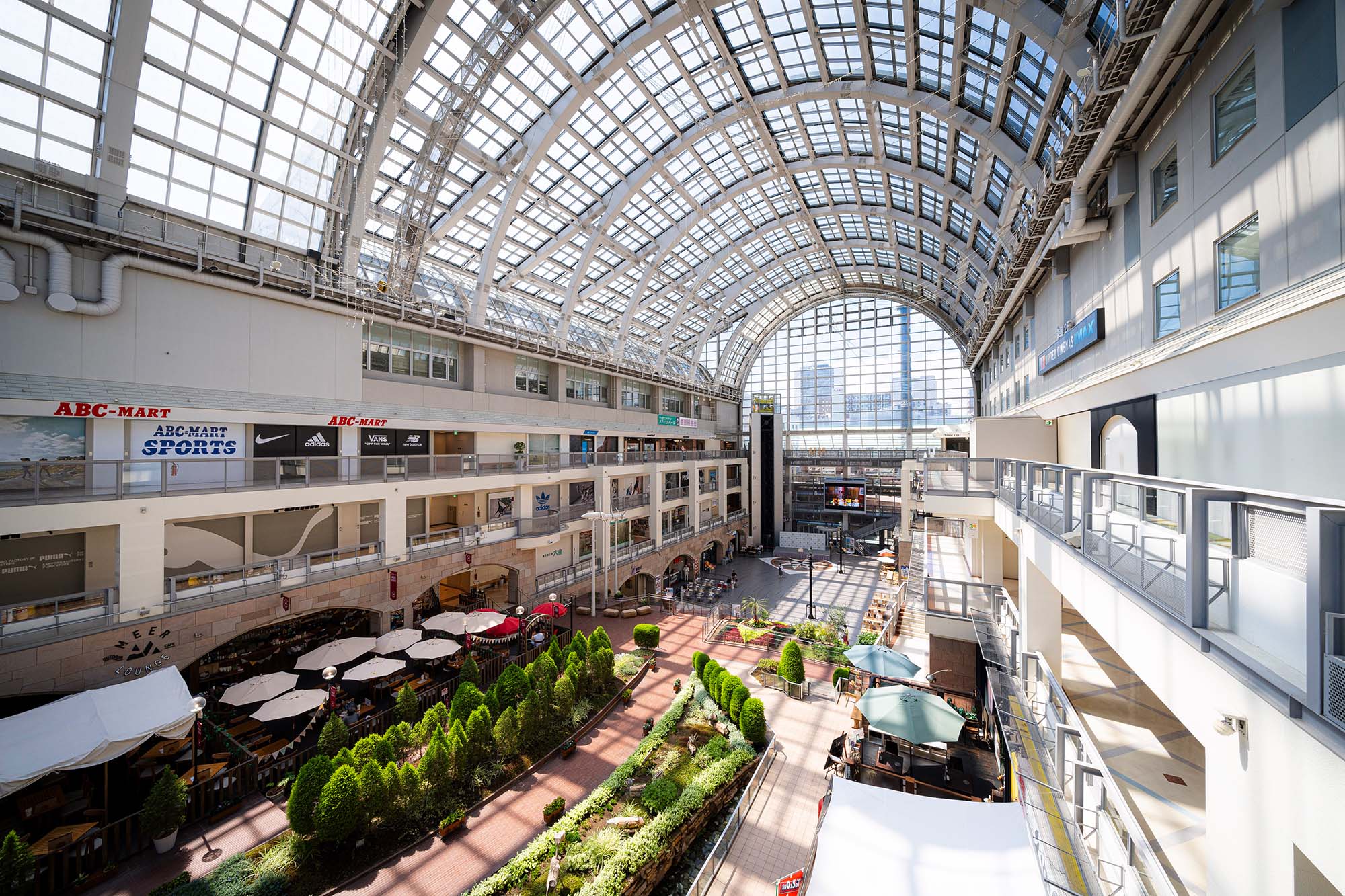 館内には約150店舗が軒を連ね、ファッションや雑貨はもちろん、地元グルメが楽しめるレストランも充実◎中心にある吹き抜けのアトリウムは、自然光が降り注ぐ癒しの空間で、イベントも盛りだくさん!特に15メートルにもなるクリスマスツリーは圧巻で、季節ごとの装飾も見どころ♡