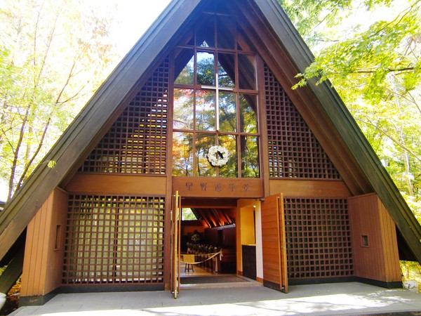 JR軽井沢駅から車で10分。「軽井沢高原教会」は、100年以上の歴史を持つ、木造りの美しい建築が特徴の教会です。
