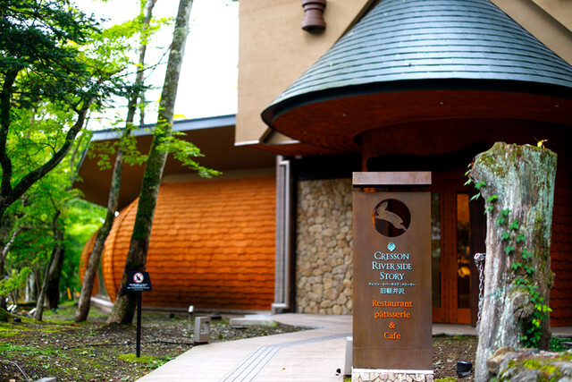 JR軽井沢駅から車で7分。「クレソンリバーサイドストーリー旧軽井沢」は、自然豊かな景観とモダンな建築が調和した隠れ家レストランです。