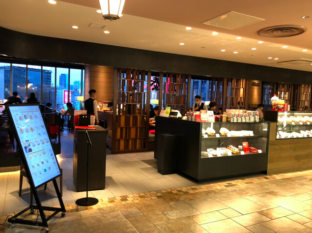 店内は木目を基調とした落ち着いたデザインで、スタイリッシュながらも温かみのある雰囲気。テーブル席やカウンター席がゆったりと配置されており、一人でもグループでも利用しやすい作りになっています。広々とした空間の中で、家族連れやカップル、外国人観光客の姿も多く見られ、都会の中でゆったりと過ごせる憩いのスポット!