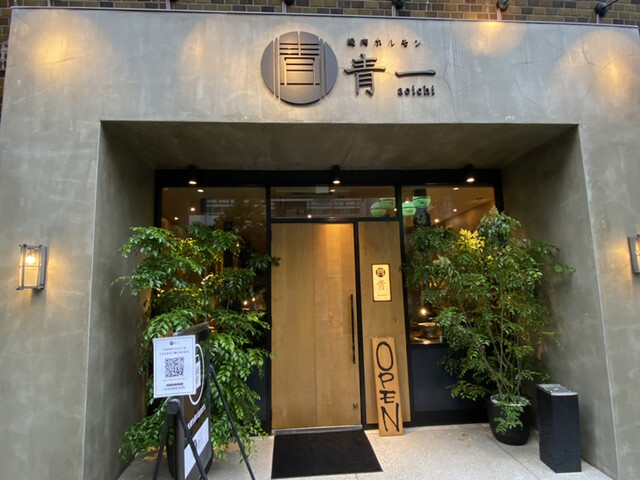 青山一丁目駅から徒歩2分。港区南青山の閑静なエリアに佇む「焼肉ホルモン 青一(あおいち)」は、都心の洗練された雰囲気の中で、本格的な炭火焼肉が楽しめる一軒です。通りから一歩入ると、木のぬくもりを感じる落ち着いた空間が広がり、七輪を囲みながらじっくりと上質な肉を堪能できます。