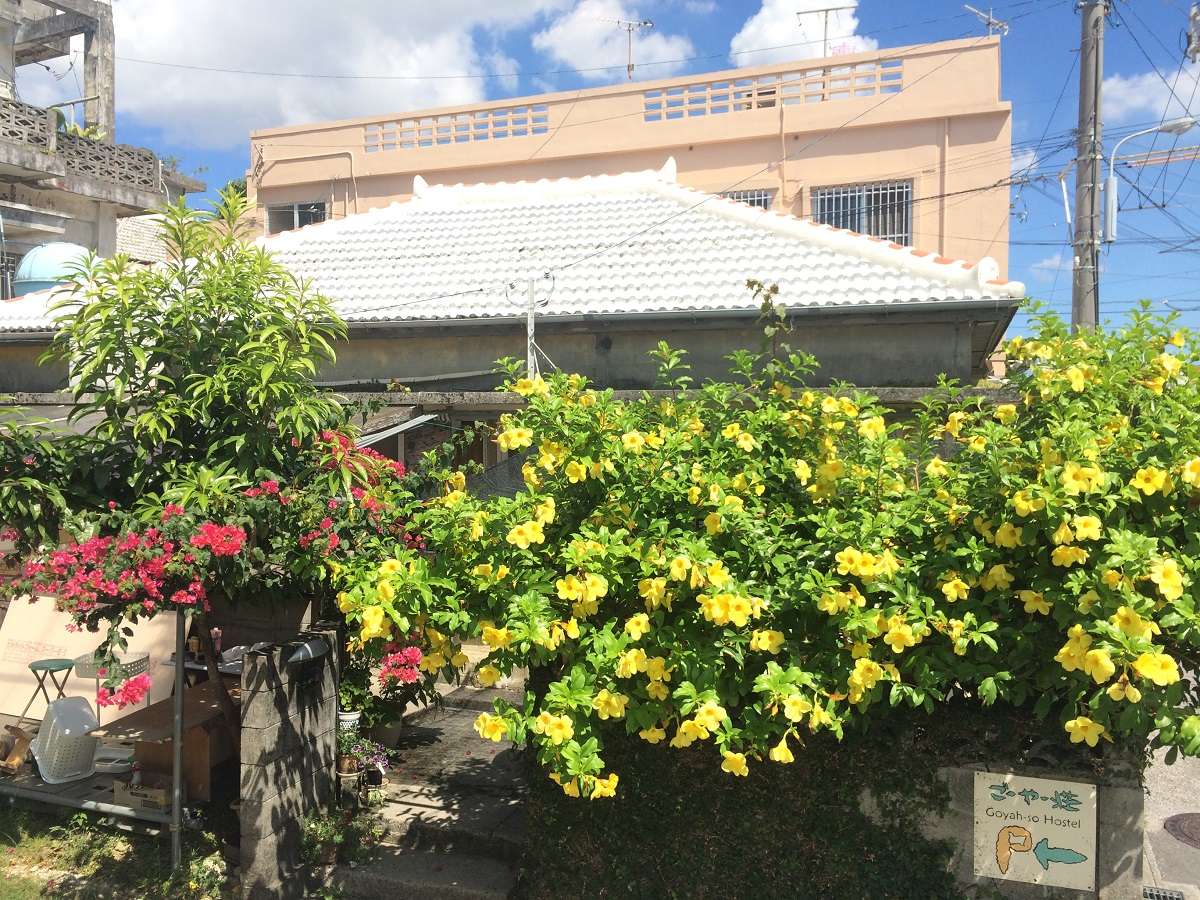 バス停「嘉間良」から徒歩2分。沖縄県沖縄市にある「ごーやー荘」は、沖縄の古民家を活かしたゲストハウスです。沖縄の伝統的な建築をそのままに、現代の快適さを加えた空間で、沖縄の歴史と文化を感じることができます。