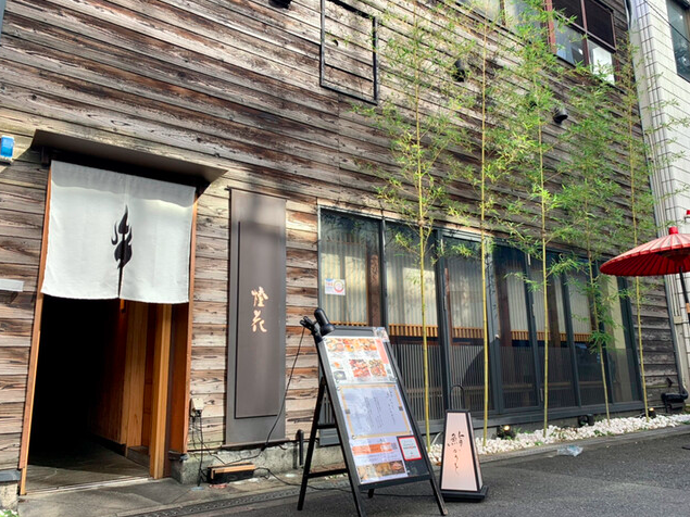 JR北新地駅から徒歩5分。大阪府大阪市にある「梅田燈花」は、落ち着いた路地裏にひっそりと構える和食と江戸前鮨のお店です。
