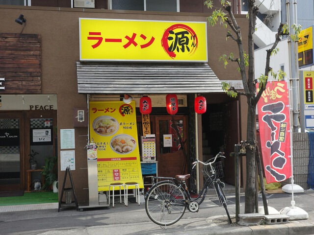 JR「京橋駅」から徒歩約6〜7分。住宅街の一角に佇む「ラーメン 源」は、食券制で気軽に立ち寄れる一軒ながら、太麺と豚骨ベースのスープを組み合わせた迫力ある一杯で知られています。