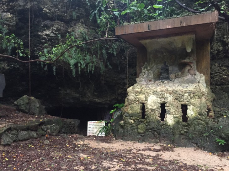 この洞窟はかつて1000人もの住民が避難した場所で、沖縄の戦争遺跡として知られています。そのため、洞窟内部には平和への願いを込めた石碑が設置されています。