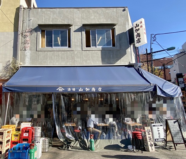 つくばエクスプレス浅草駅から徒歩2〜3分。ホッピー通りの入口に立つ「酒場 山加商店」は、明治創業の魚屋が母体となる大衆酒場で、朝10時から夜23時まで年中無休で営業しています。角地に広がる開放的な空間は約150席と規模も大きく、テーブル席やカウンター席に加えて通りを眺められる外席も備えており、観光途中の昼飲みにも便利です◎