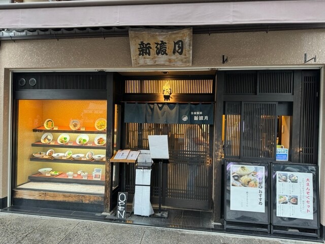京福嵐山本線「嵐山駅」から徒歩1分。渡月橋のほど近くにある「自家製麺 新渡月」は、京都らしい食材を使った創作うどんが味わえる専門店です。創業90年の系譜を継ぎつつ、2016年に自家製麺の店としてリニューアルし、無添加・無化調にこだわった安心の一杯を提供しています。
