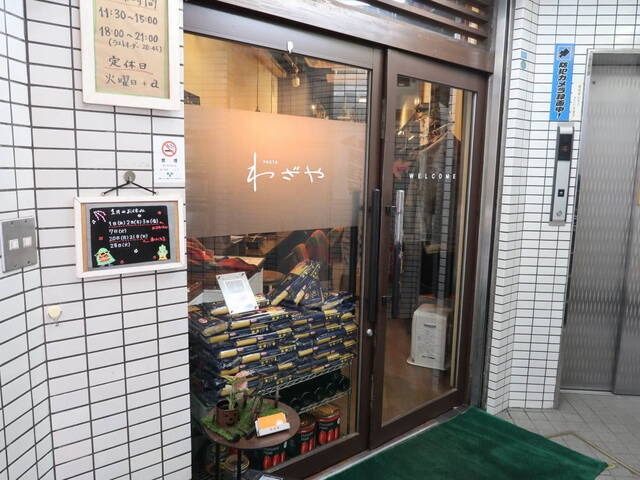 三鷹駅南口から徒歩3分。商店街の一角にある「PASTA わざや」は、90種類以上のパスタがそろう専門店です。