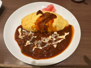 看板料理のビーフストロガノフオムライスは、半熟のふんわり卵にバターライスを包み、濃厚でまろやかなソースをかけた食べ応えある一品です!やわらかく煮込まれた牛肉と玉ねぎの旨みが卵とご飯に絡み、口いっぱいにコクのある味が広がります♪明太子やハヤシソースなどバリエーションも豊富で、セットメニューはエビフライやサラダなども付いて満足度の高い内容です◎味・量・見た目のバランスが取れており、洋食好きにはたまらない構成です♪