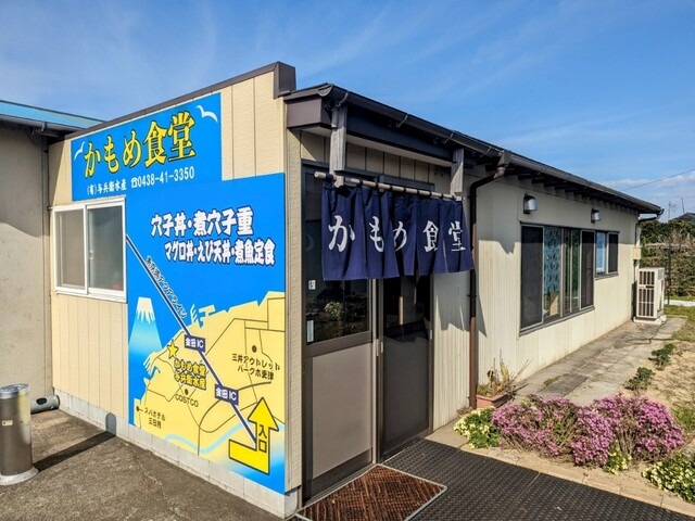 木更津金田インターチェンジから車で約3分。東京湾を望む静かなエリアに佇む「かもめ食堂」は、地元・木更津港で水揚げされた新鮮な魚介を使った料理が自慢の食事処です。