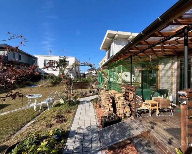 のぼり旗が目印の駐車場には10台ほどのスペースがあり、ドライブ途中にも立ち寄りやすい立地。広々とした敷地の奥に建つ木造の建物は、どこか懐かしい雰囲気で、訪れる人を温かく迎えてくれます。