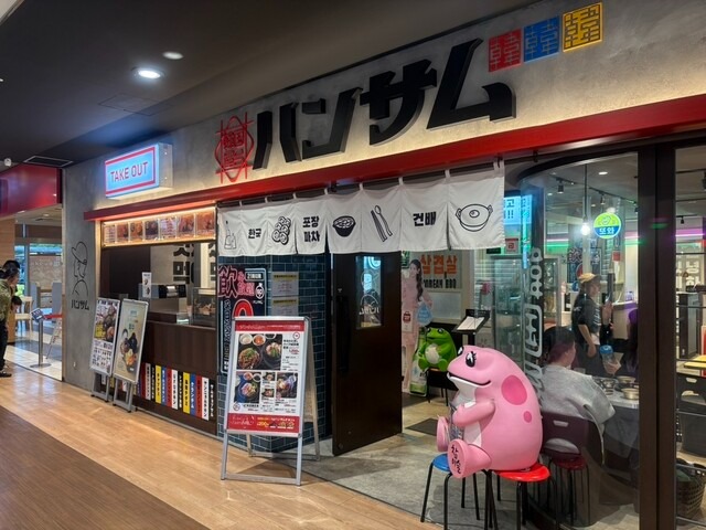 海浜幕張駅から徒歩約2分。メッセ・アミューズ・モール1階にある「韓国屋台ハンサム 海浜幕張店」は、本場の韓国屋台を再現したような活気ある雰囲気が魅力の韓国ダイニング。ネオンが灯るポップな店内では、韓国アイドルの映像が流れ、旅行気分で食事を楽しむことができます。