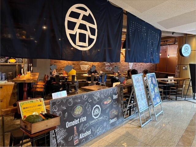 JR海浜幕張駅から徒歩約7分。アパホテル&リゾート〈東京ベイ幕張〉のイーストウィング1階にある「GREEN TIME(グリーンタイム)」は、契約農家から届く新鮮な野菜とふわとろオムライスが自慢のカフェレストランです。ホテル直営ならではの上質な雰囲気の中で、地元千葉県産の食材をふんだんに使った料理が楽しめます。