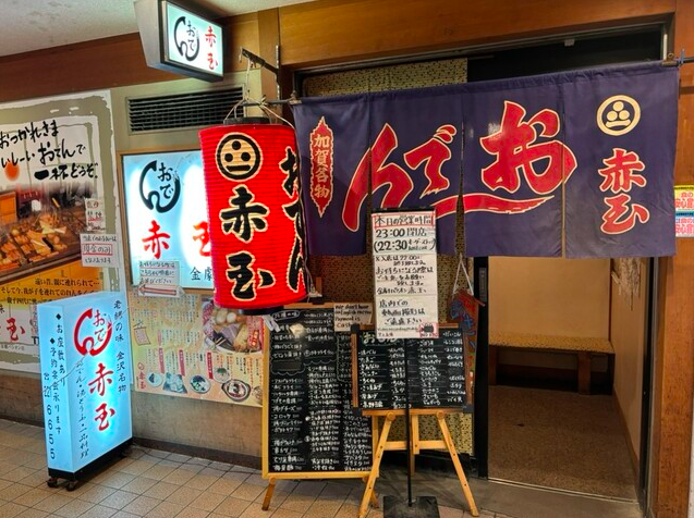 JR金沢駅から車で13分。石川県金沢市にある「赤玉 金劇パシオン店」は、地元の人々はもちろん、観光客にも親しまれている金沢おでんの名店です。
