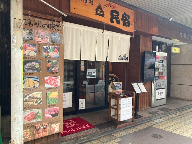 広島電鉄1号線「胡町駅」から徒歩3分。広島県広島市にある「居酒屋 民宿」は、毎朝市場で仕入れる鮮魚と広島の地酒が楽しめる和食居酒屋です。