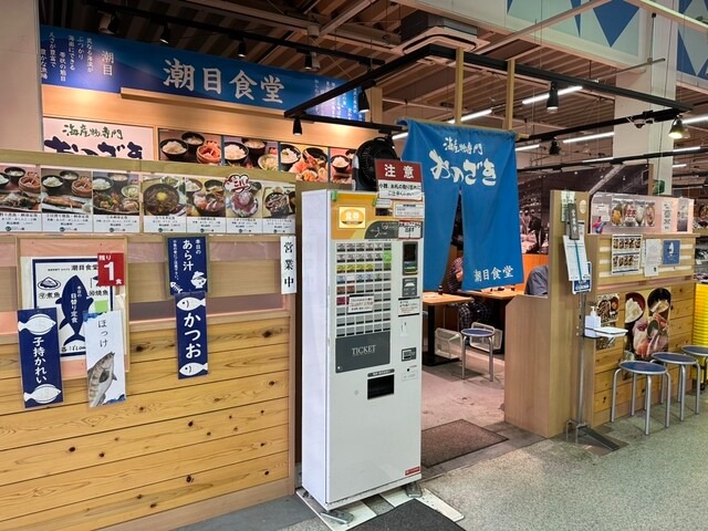 いわき駅から徒歩約12分。鮮場やっちゃば平総本店の中にある「潮目食堂」は、海の恵みをまっすぐ味わえる海鮮食堂として知られ、鮮魚店直営ならではの確かな目利きで選ばれた魚を使った料理が並びます。店に入ると、その日の仕入れに合わせて用意された海鮮丼や刺身定食、焼魚・煮魚の定食がずらりと掲示され、いわきの海を身近に感じられる食事が楽しめます♪