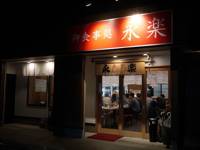 秋田駅から徒歩5分ほど。秋田市中通に店を構える「永楽食堂」は、駅前という立地にありながら、観光客向けに寄せすぎない、日常の延長線にある酒場として長く親しまれてきた一軒です。外観や店内は気取らない佇まいで、扉を開けると日本酒の銘柄がずらりと並び、酒と料理を落ち着いて楽しめる空気が自然と整っています。