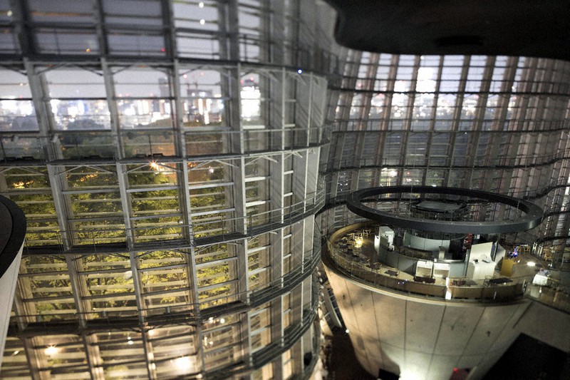 建築家黒川紀章による設計で、波打つようなガラスカーテンウォールと逆円錐形のエントランスが印象的な外観をしています!
