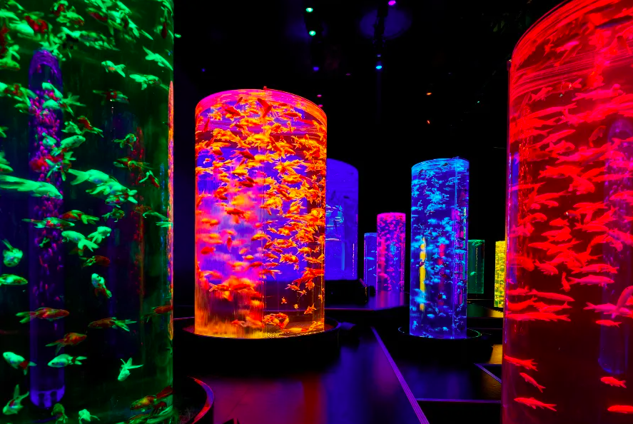 ここでは、江戸時代から続く金魚鑑賞文化が現代のアートとして見事に表現されています。