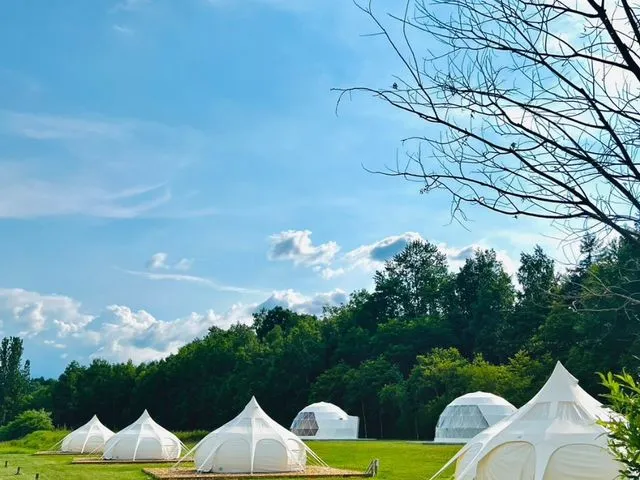 施設には直径7メートルの大型ドームテントを完備し、一部には透明なパネルが取り入れられているため、室内でも自然の風景を楽しむことができます。秋冬の寒さにも対応した暖房設備が整っており、季節を問わず快適に過ごせるのが魅力です!また、テント内のハンモックで揺られながら星空を眺める時間は、特別な癒しのひととき♡